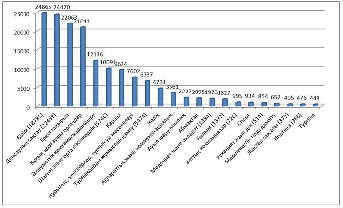 Статистика көрсеткендей, азаматтардан дін, мемлекеттік тілді дамыту, жастар саясаты, туризм мәселелері бойынша біршама аз өтініш түсті.